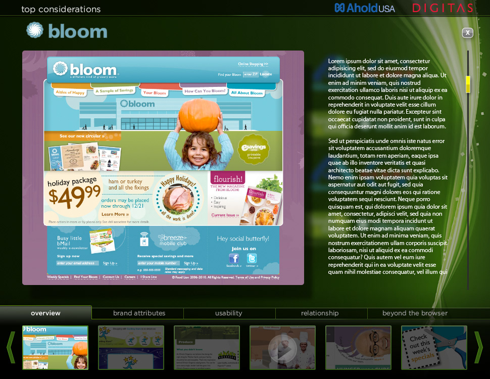 Art Director, Lead Designer. Created concept and design for competitive comparison interface/module for Ahold USA partners.