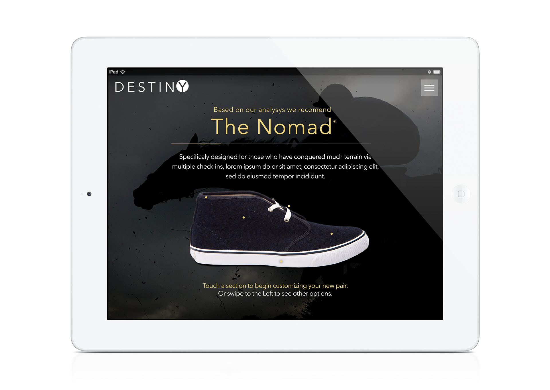 Art Direction, UI/UX Design. Spec work for Destiny shoe company.