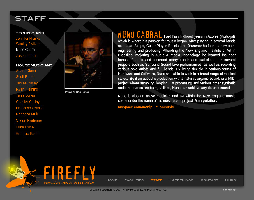 Creative Director, Web Designer Created company logo as well as concept and design for fireflyrecording.com