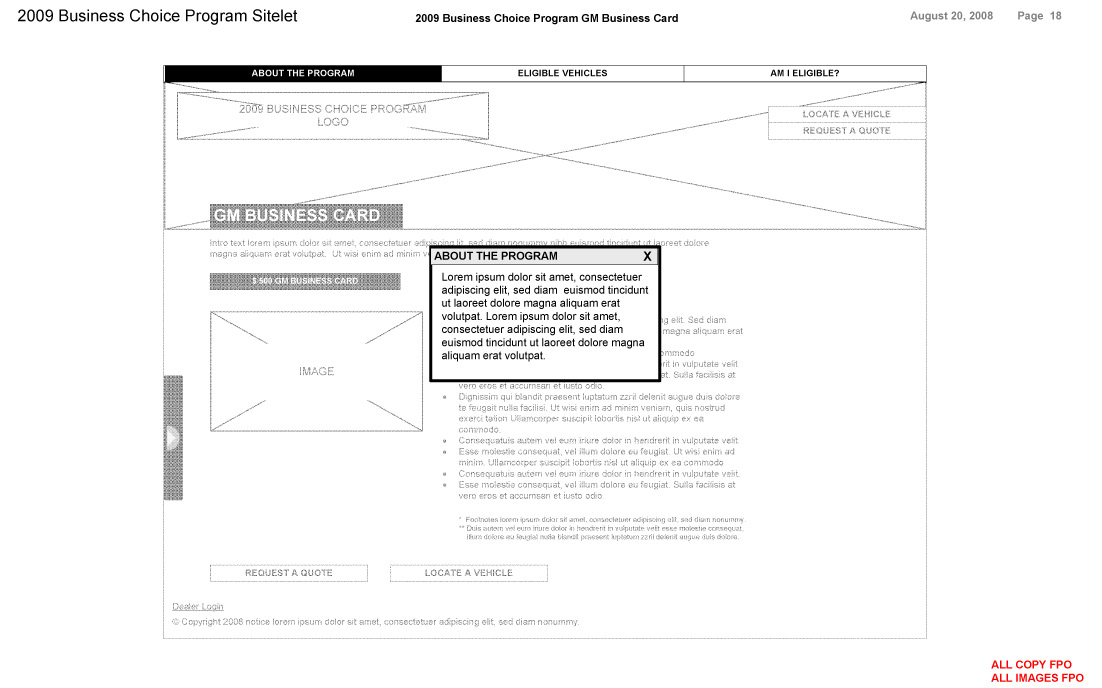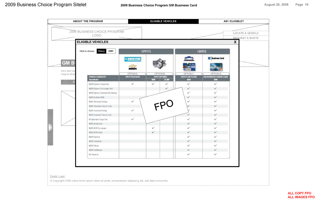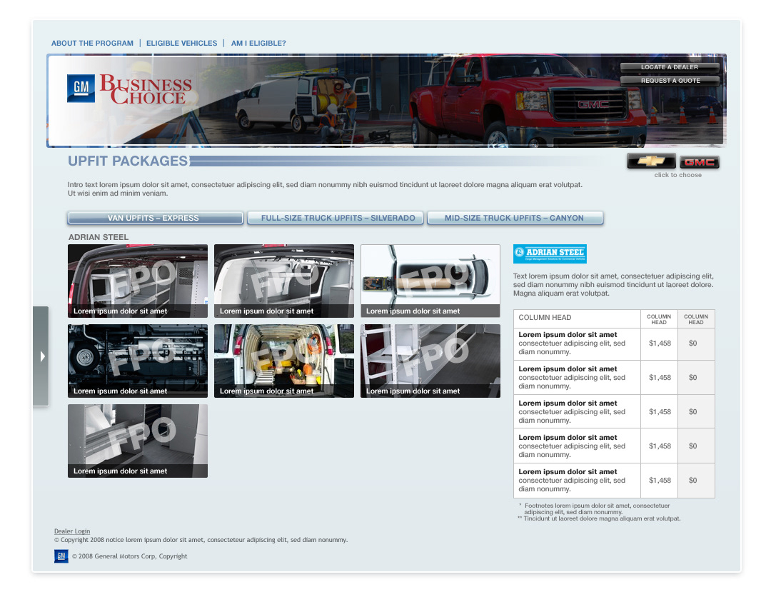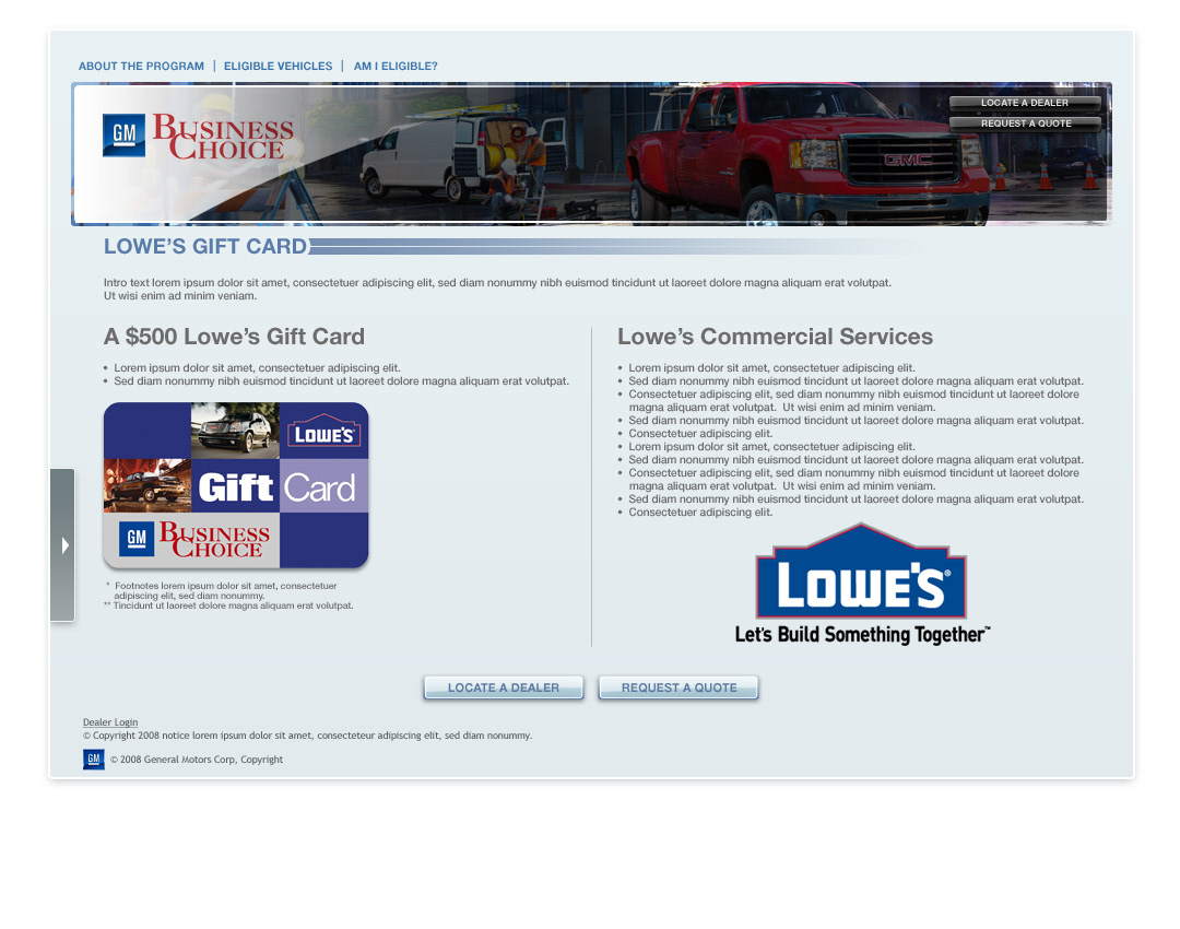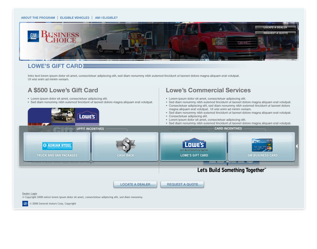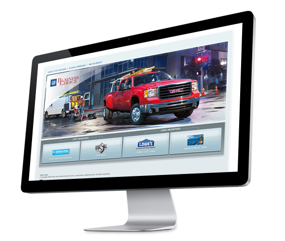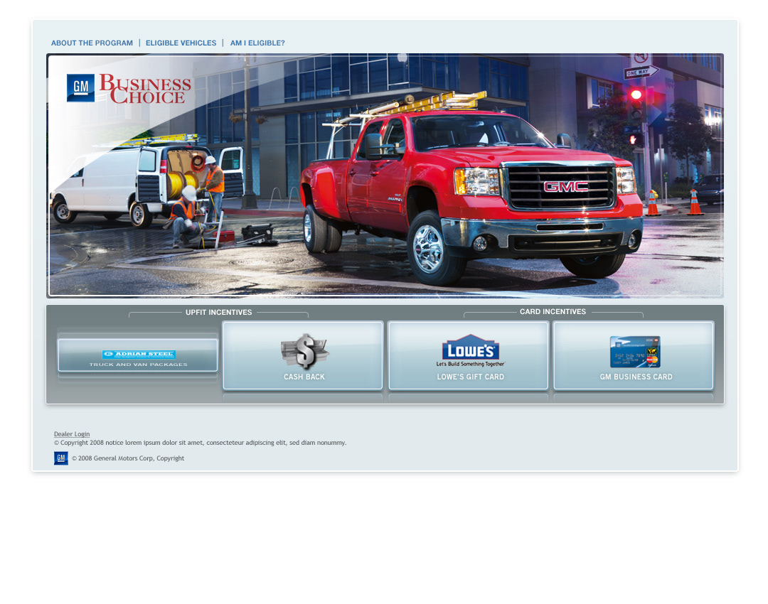 Art Director, Lead Designer. Art Directed and designed all content for GM Business Choice website. Provided assistance and monitored all offshore development work.