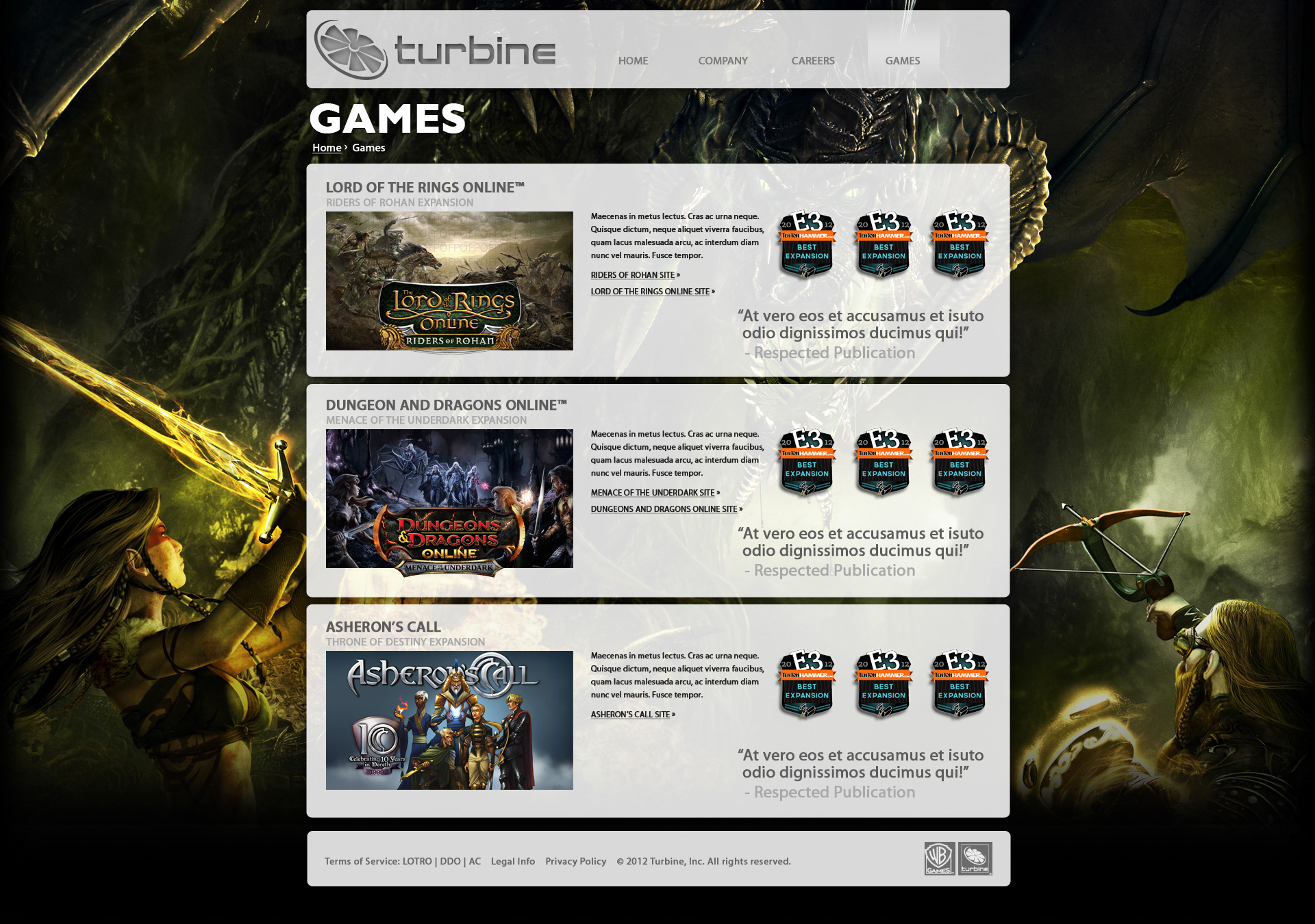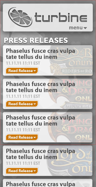 Design Director, Designer Created initial comps for site re-design as well as provided all Creative and Design Direction to a team of Designers, Front and Back-end Developers.Visit: www.turbine.com